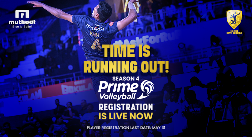 Registration for player auction for Prime Volley League Season 4 closing on may 31st.